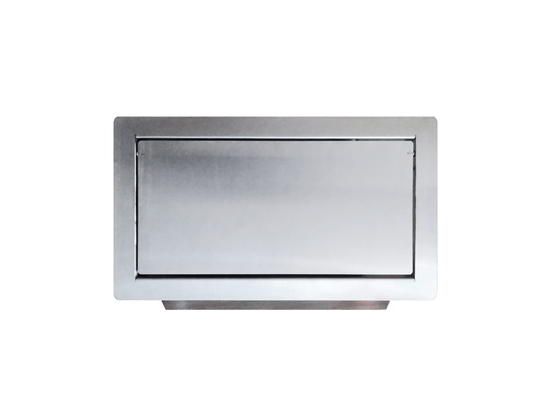 Люк для мусора с маятниковой дверкой, изготовлен из нержавеющей стали.